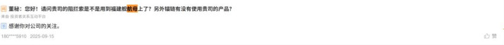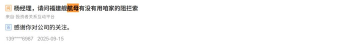 面临航母传闻,巨力索具董秘延续其一贯的魄力:不否定,不承认,不闪现。投资者问就回,“感谢你对公司的宽恕”。
