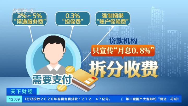 最常见的套路包括“拆分收费”。比如贷款机构只宣传“月息0.8%”,却不提这笔利息以外,借钱东谈主还要支付2%~5%的所谓“渠谈办事费”、0.3%的“担保费”,致使强制系结的“账户保障费”。这些用度看似“项目合理”,实则一起是融资老本的一部分。