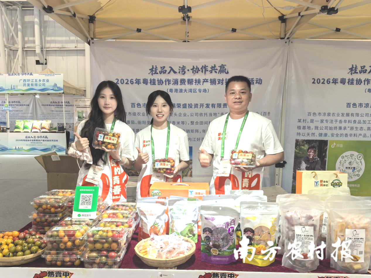 在百色田阳粤桂互助展区内,田阳多彩圣女果是当之无愧的“流量担当”。四肢农业大区的“一红一绿”维持产业的拳头产物,这款带着壮乡的小番茄,凭借清甜脆嫩的口感、丰富的色调品类,诱导了普遍不雅众驻足试吃。“本年咱们的多彩圣女果线上线下销售额也曾抨击 40 万元,咱们但愿把田阳的好产物推给更多大湾区耗尽者。” 百色市田阳区恒满荣盛投资斥地有限连累公司负责东说念主韦文雅先容说。