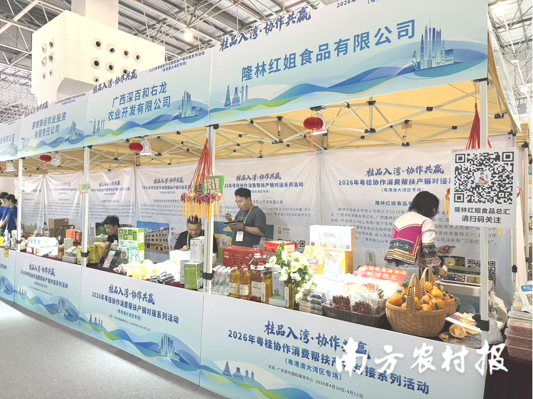 4月10-12日,第十届中国国际食物及配料展览会、第四届中国国际预制菜产业展览会、第十五届广东当代农业展览会(下称 “三博会”)在东莞・广东当代国际展览中心在意启幕。在粤桂互助机制的精确赋能下,广西 8 个结对帮扶地级市、33 个帮扶县域联袂 43 家优质农业遐想主体组团参展,带着150余款桂乡特点好物登上国度级展台,借展会之力买通出山入湾通说念,让广西优质农特产物从深山田间走向大湾区、行销宇宙。