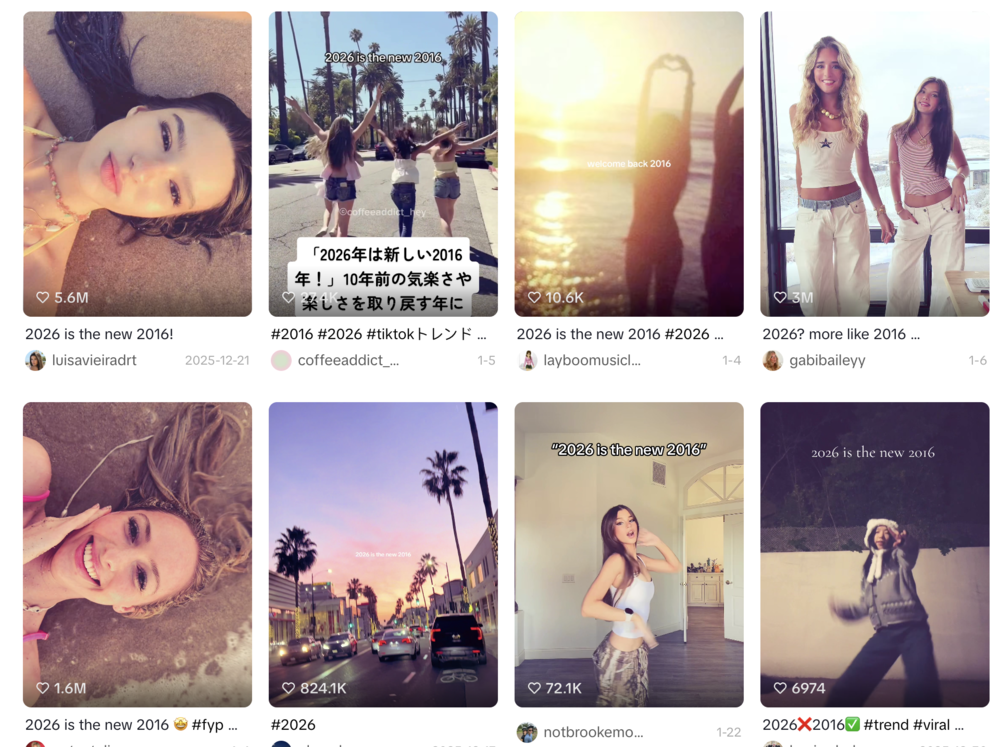 证据TikTok提供的数据,只是在2026年的一月中上旬,“2016”这个词的搜索量就激增了452%,2016主题的短视频拍摄数目跳跃5500万个。