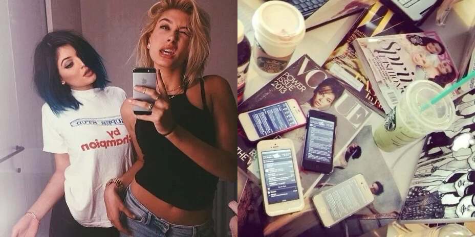 放在国际,是Snapchat的狗狗耳朵滤镜、粉色的适度星冰乐、eos球型润唇膏、玫瑰金配色的iPhone6、挑染的星空色头发。