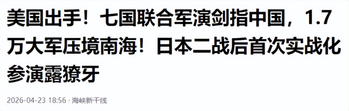 七国联军聚会菲律宾北部,日本首派航母参战,演习区距台岛仅96公里,可解放军同日就以双航母编队对冲南下。